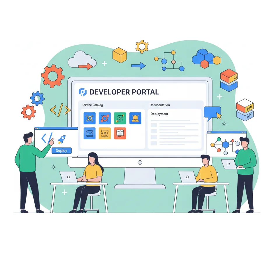 Our platform engineering services deliver more than just a developer portal; we deliver a product-centric ecosystem focused on measurable business outcomes. Using Backstage as a foundation, we create a 'paved path' that makes it easy for developers to do the right thing. We measure success not by the number of tools, but by the tangible improvements in key metrics like deployment frequency, lead time for changes, and developer satisfaction. The result is a self-service platform that reduces friction, ensures governance, and allows your teams to focus on creating value, not fighting infrastructure.