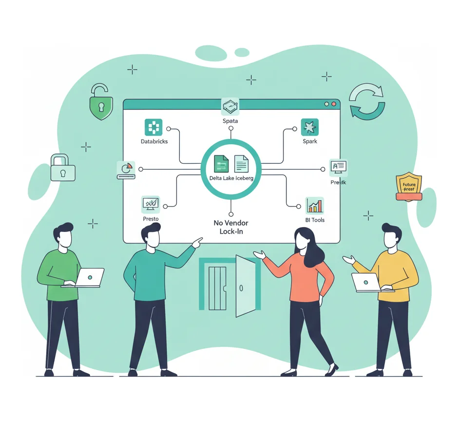 We build on open formats like Delta Lake and Apache Iceberg, ensuring your data platform is vendor-agnostic and future-proof. This approach enables interoperability with other tools while maximizing the performance benefits of the Databricks Data Intelligence Platform.